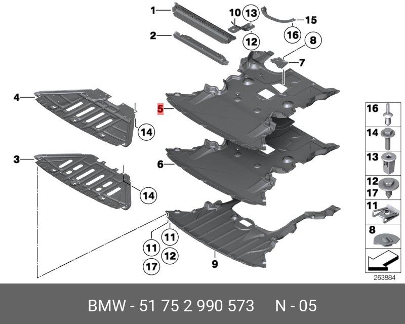 51 75 2 990 573 BMW Экран моторного отсека BMW