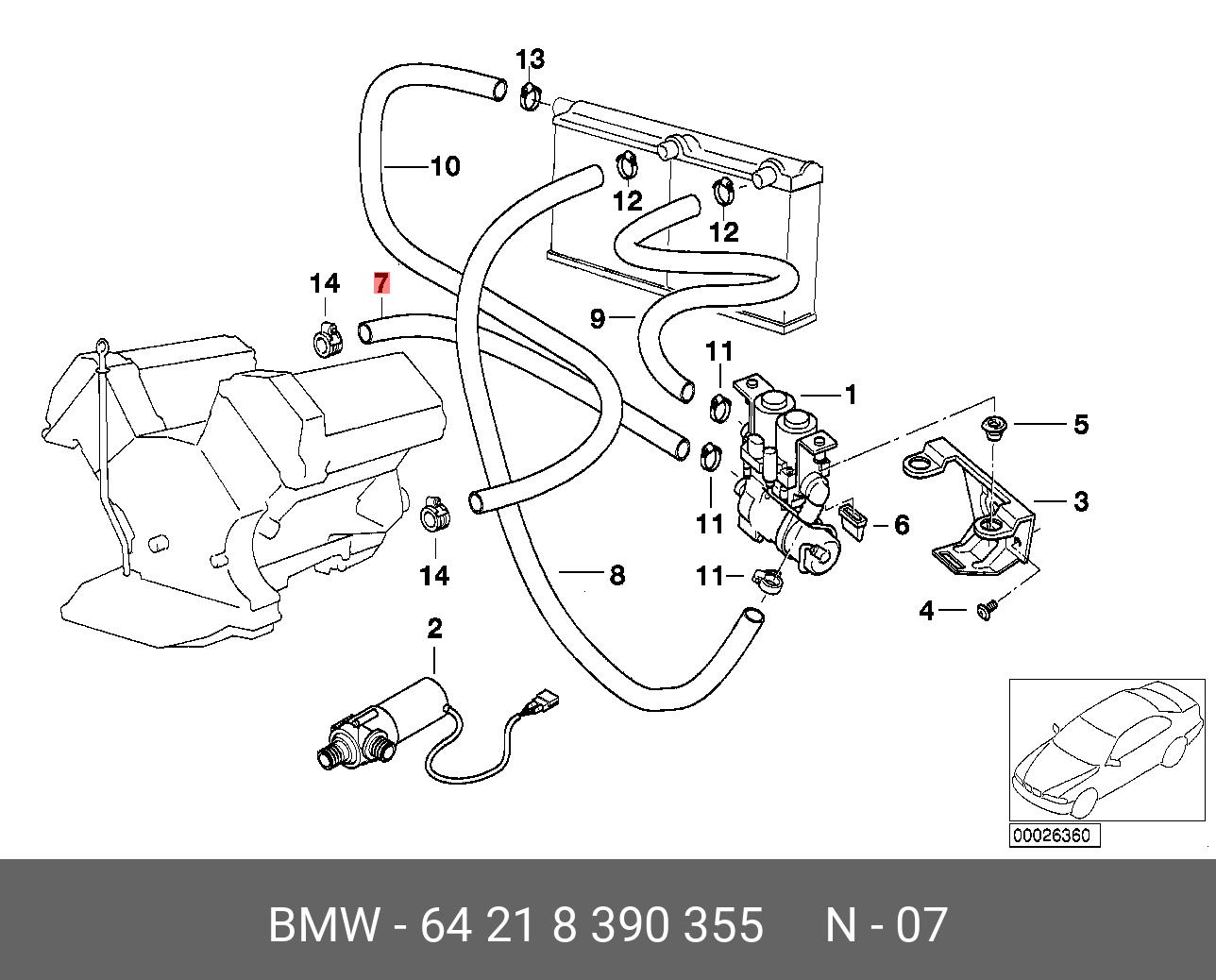 64218390355 BMW 64218390355 Шланг подвод. трубопр. двиг. -доп. вод. помп ! \BMW 7' E38