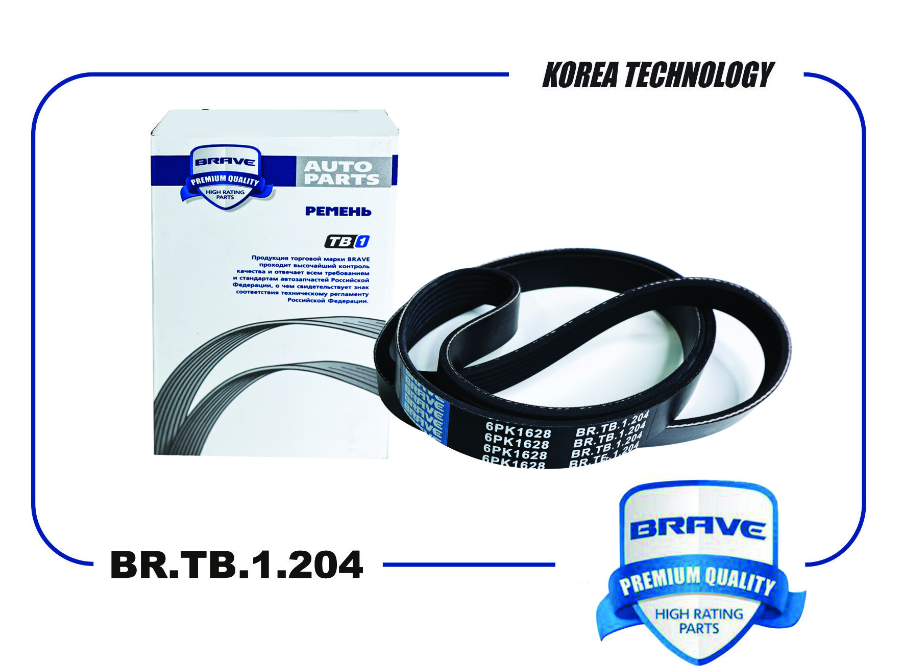 BR.TB.1.204 BRAVE Ремень поликлиновой 6PK1628 BR.TB.1.204 Chery Tiggo 57 Pro MAX 1.6, Chery Tiggo