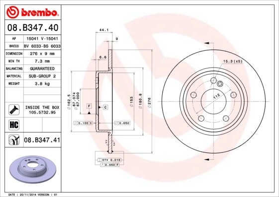 | Наименование | Диск тормозной 08.B347.41 |