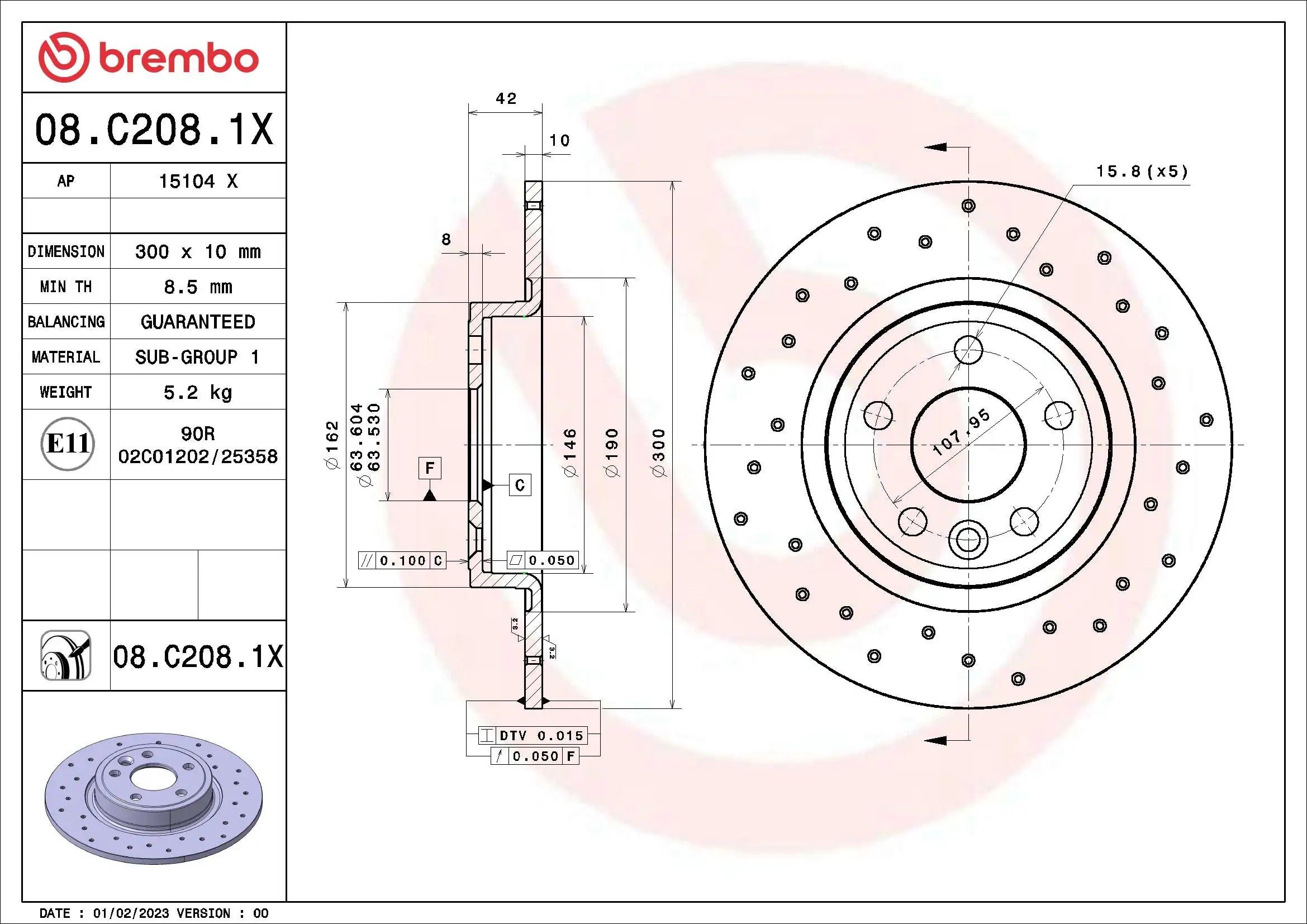 08C2081X BREMBO 08.C208.1X Диск тормозной JAGUAR (CHERY) E-PACE 08/18-> / JAGUAR E-PACE (X540) 0