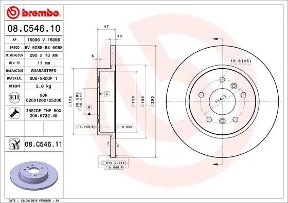 08.C546.11 BREMBO Диск тормозной 08.C546.11