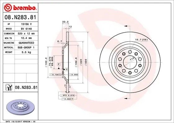08.N283.81 BREMBO Диск тормозной задний 08.N283.81