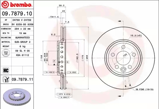 09.7879.11 BREMBO 09.7879.11 диск тормозной передний! с покрытием\ Rover 75 1.8-2.5/2.0CDTi 01>