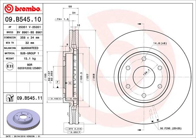 09.B545.11 BREMBO Диск тормозной 09.B545.11