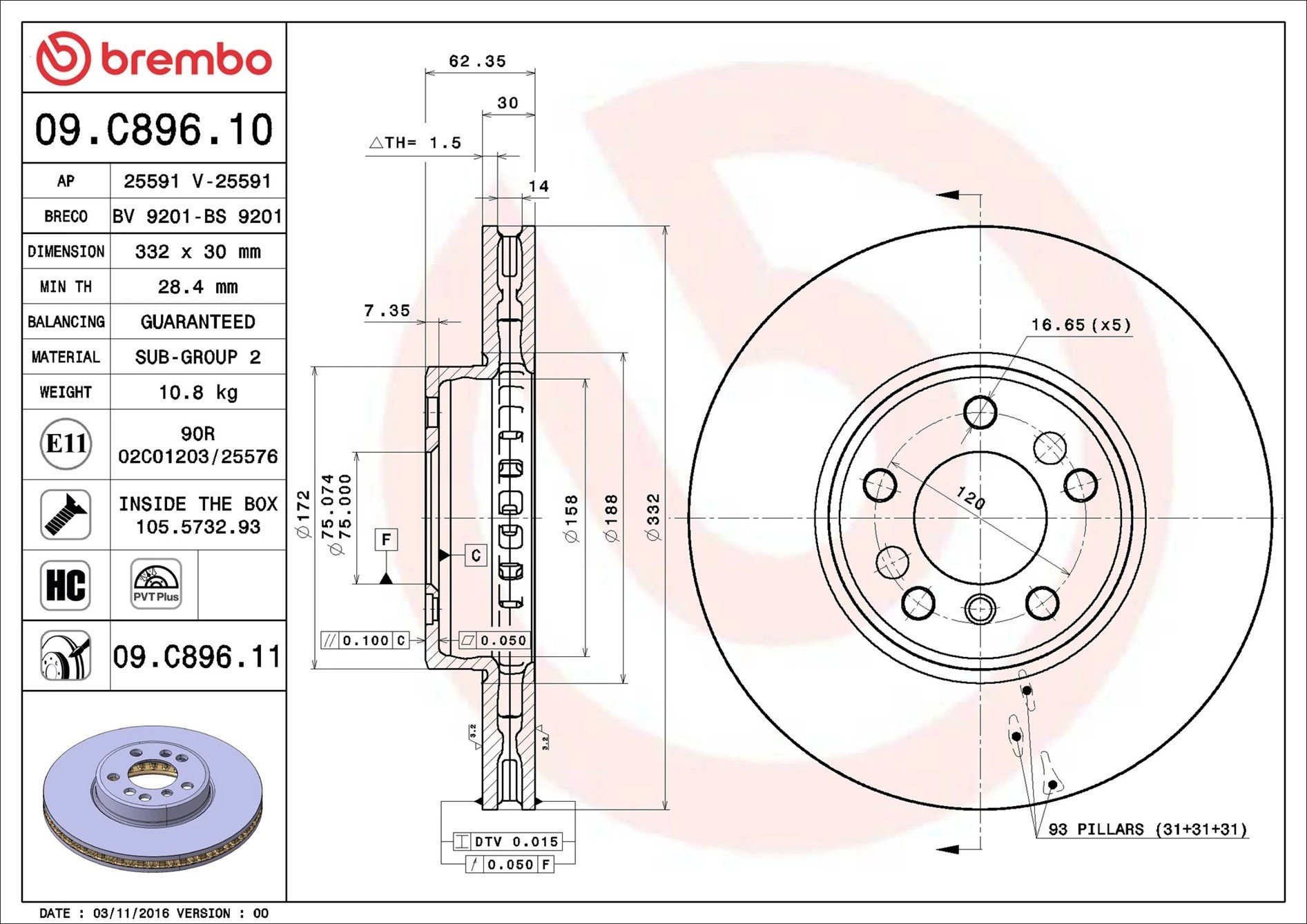 09.C896.11 BREMBO Диск тормозной 09.C896.11