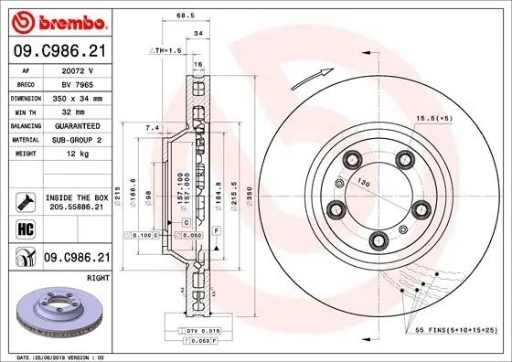 09C98621 BREMBO Диск тормозной 09.C986.21 правый