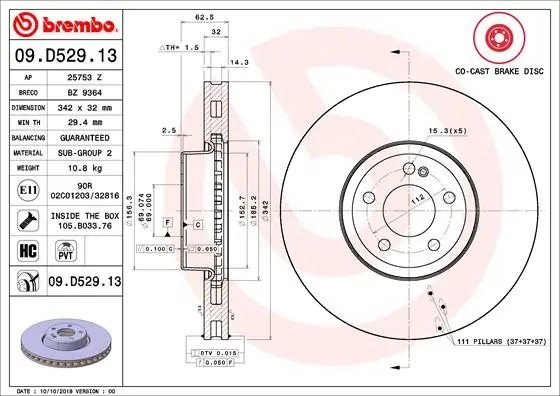 09.D529.13 BREMBO Диск тормозной 09.D529.13