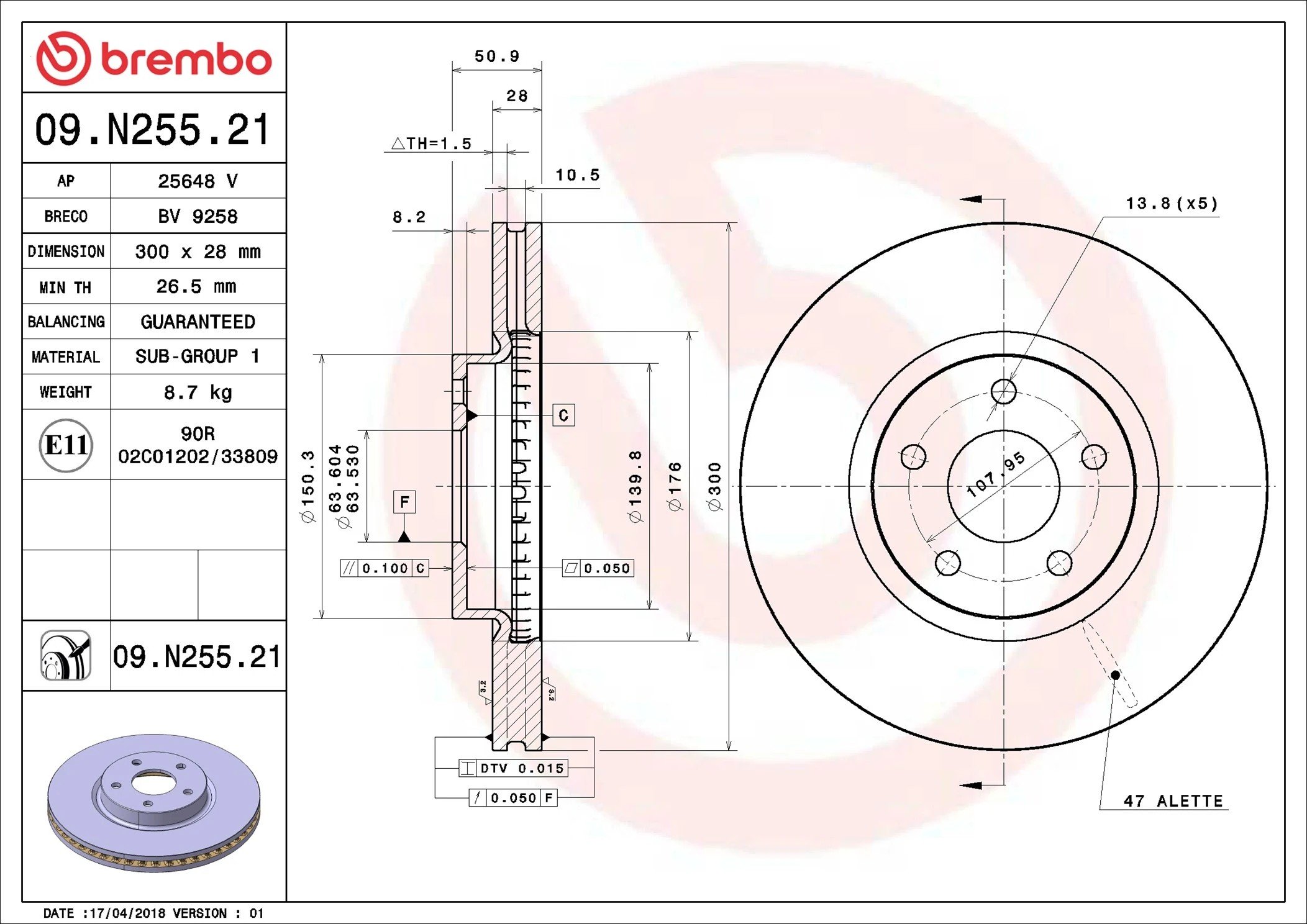 09.N255.21 BREMBO Диск тормозной 09.N255.21