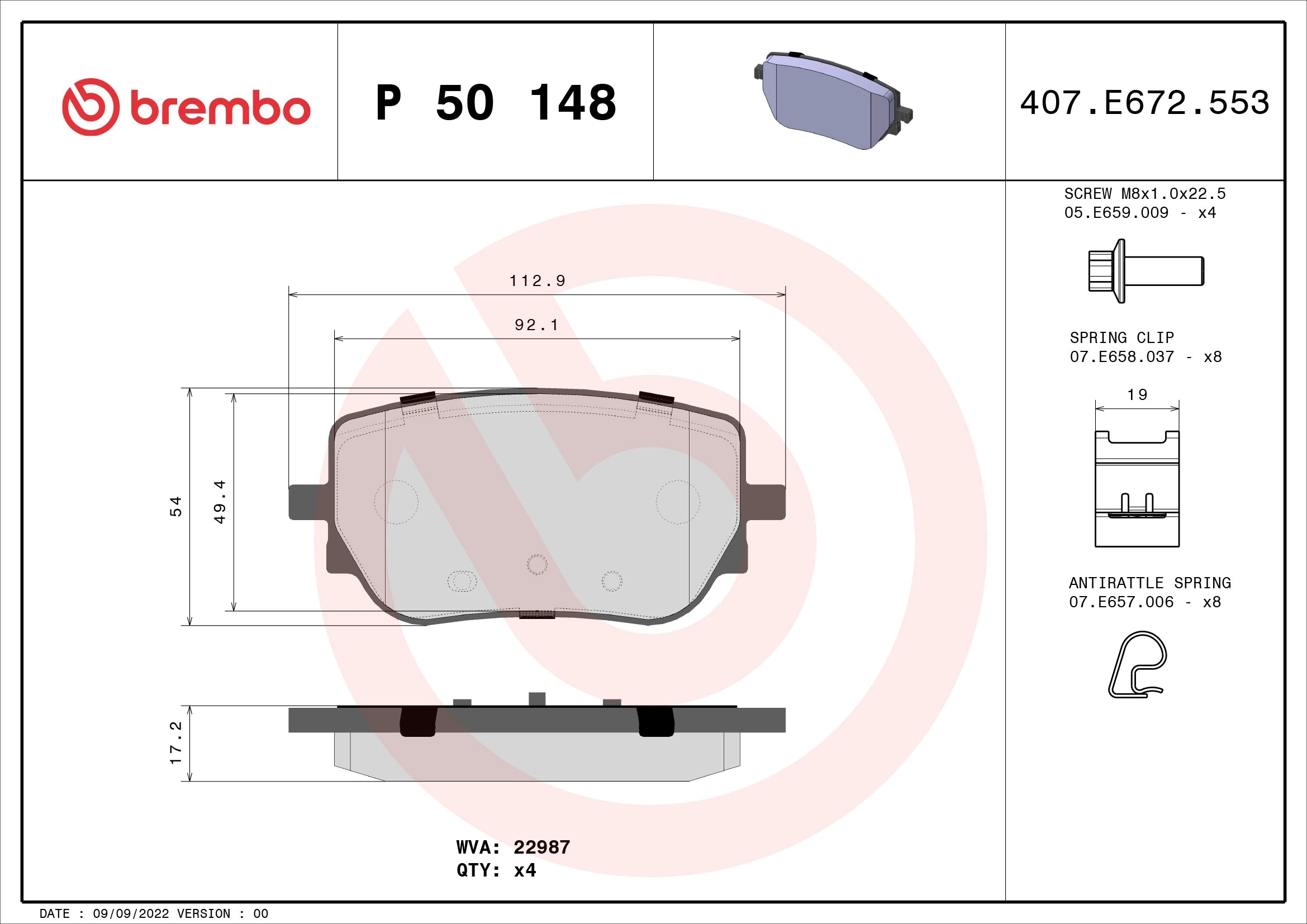 P50148 BREMBO Колодки тормозные дисковые P50148