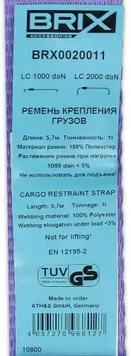 BRX0020011 BRIX ремень крепления грузов! 6м 4т с храповиком и крюками