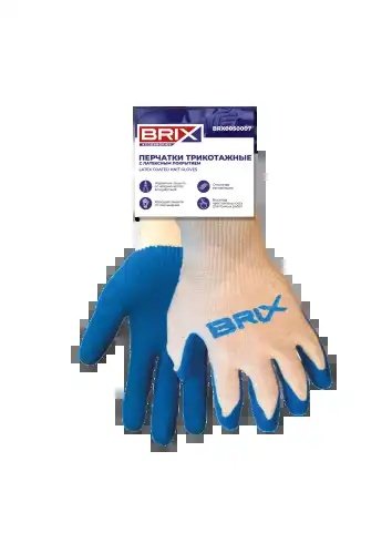 BRX0050007 BRIX перчатки!х/б с 1-слойным латексным обливом,оверлок(7класс вязки,11р.,белые(сер)