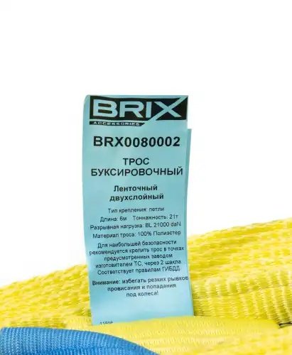 BRX0080002 BRIX трос буксировочный! Двухслойная VIP лента 21т 6м, с петлями\UNIVERSAL