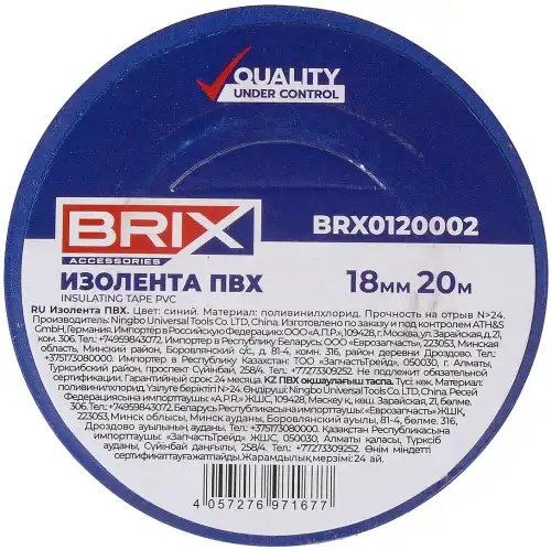 BRX0120002 BRIX изолента! ПВХ, 18мм х 20м, синяя\