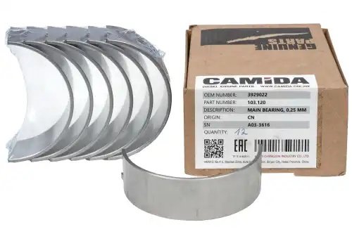 103120 CAMIDA Вкладыш коленвала коренной нижний ремонт. (0.25 мм) КАМАЗ, НЕФАЗ дв. Cummins ISB