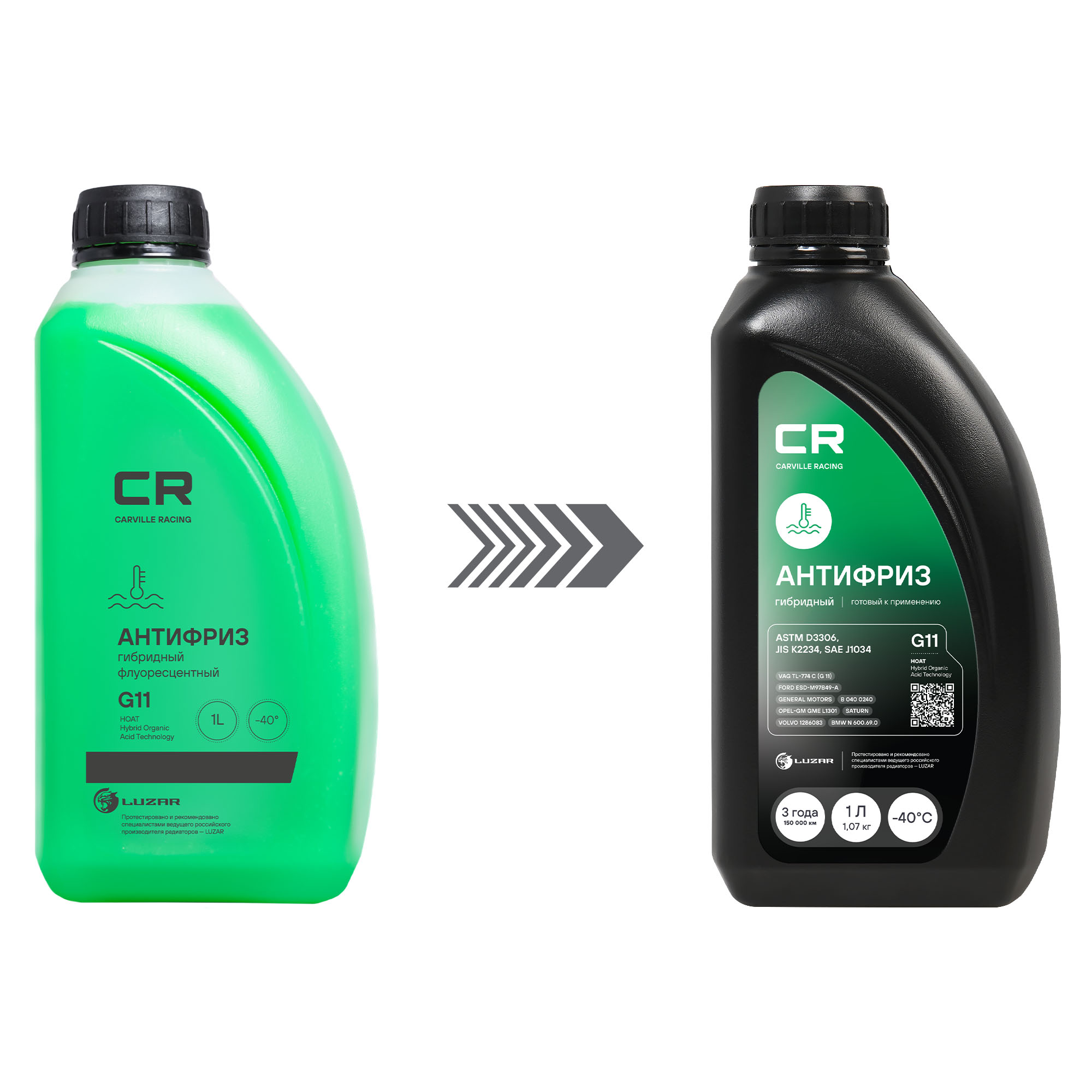 | Наименование | Антифриз зеленый -40C 1л/1.07кг G11 HOAT флуоресцентный CARVILLE RACING |