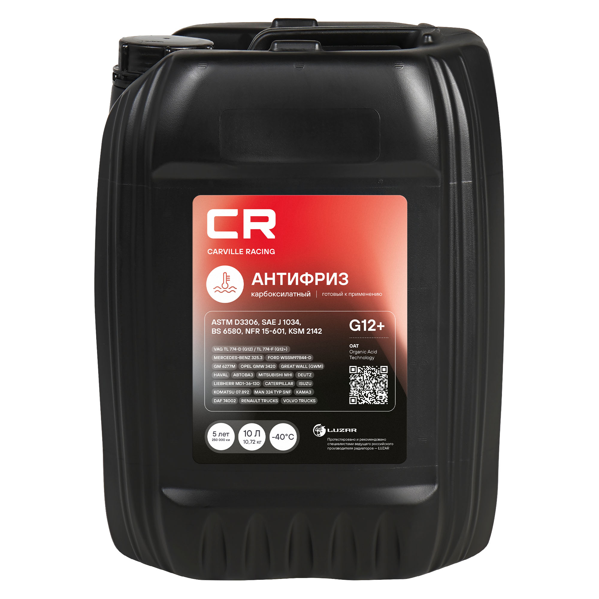 | Наименование | Антифриз красный -40C 10л/10.74кг G12+ OAT флуоресцентный CARVILLE RACING |