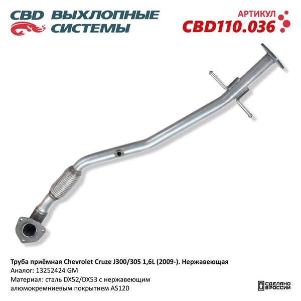 CBD110.036 CBD Труба приемная глушителя CHEVROLET Cruze (09-) CBD