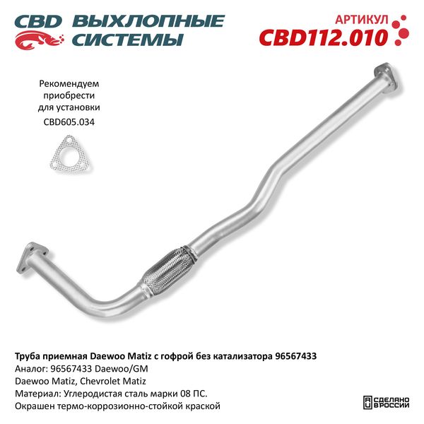 CBD112.010 CBD Труба приемная глушителя CHEVROLET Spark (98-05) CBD
