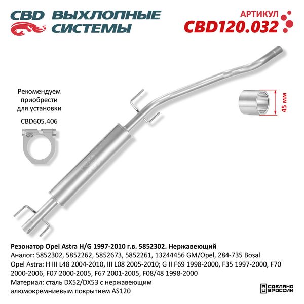 CBD120.032 CBD Глушитель OPEL Astra H (1.6/1.8) средняя часть CBD