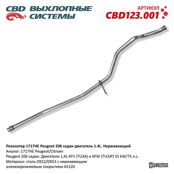 CBD123.001 CBD Труба приемная глушителя PEUGEOT 206 (02-07) CBD