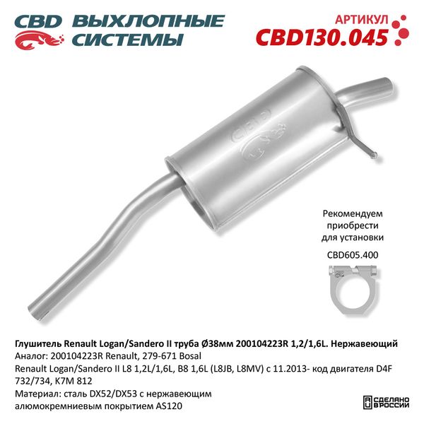 CBD130.045 CBD Глушитель RENAULT Logan,Sandero (14-) задняя часть CBD