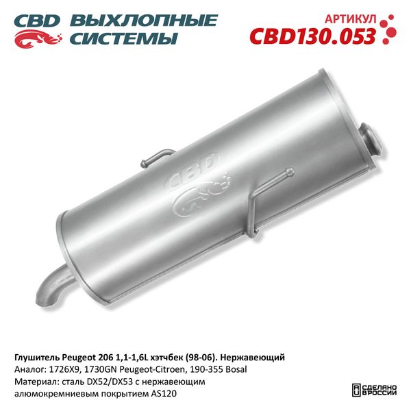CBD130.053 CBD Глушитель PEUGEOT 206 (98-) задняя часть CBD