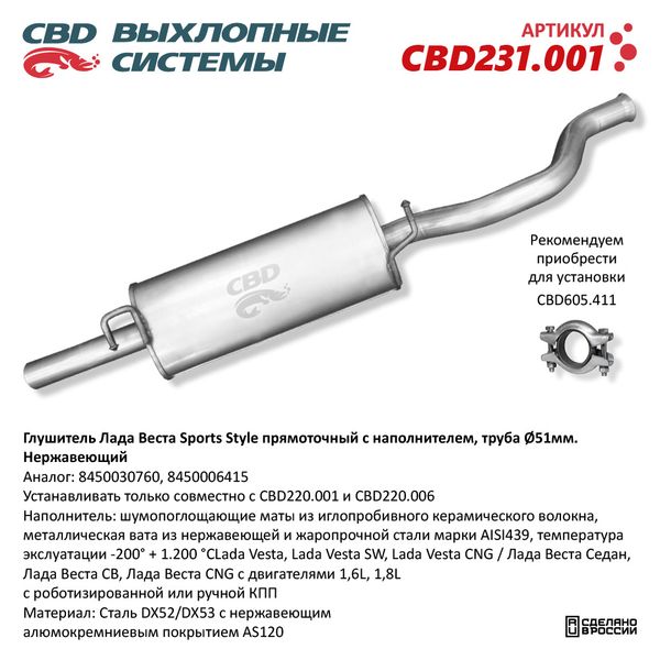 CBD231.001 CBD Глушитель ЛАДА Vesta Sports Style нержавеющая стальCBD