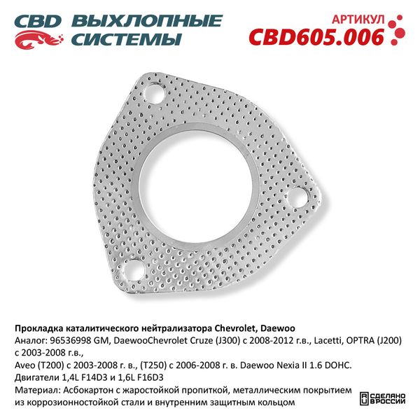 | Наименование | Прокладка коллектора CHEVROLET Lacetti выпускного CBD |