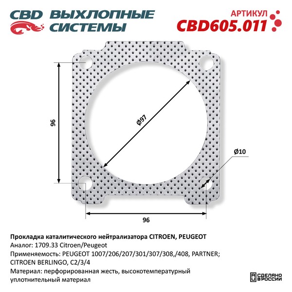 CBD605.011 CBD Прокладка PEUGEOT CITROEN нейтрализатора каталитического CBD