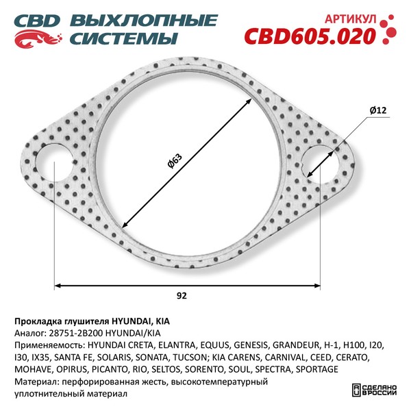 CBD605.020 CBD Прокладка HYUNDAI Tucson KIA Bongo 3 (06-) выхлопной системы CBD