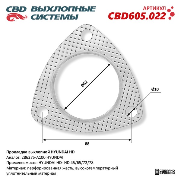 CBD605.022 CBD Прокладка HYUNDAI HD65,72,County выхлопной трубы CBD