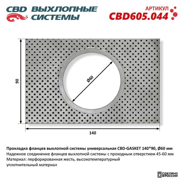 CBD605.044 CBD Прокладка выхлопной системы универсальная 140х90 (отверстие 60мм) CBD
