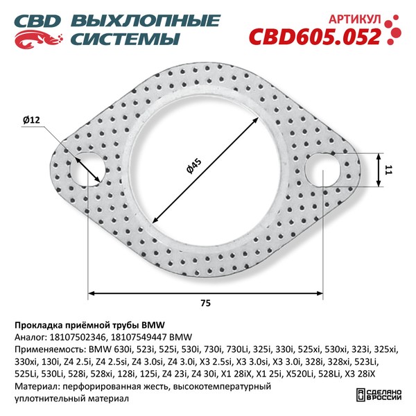 CBD605.052 CBD Прокладка BMW X5 (E53) трубы приемной CBD