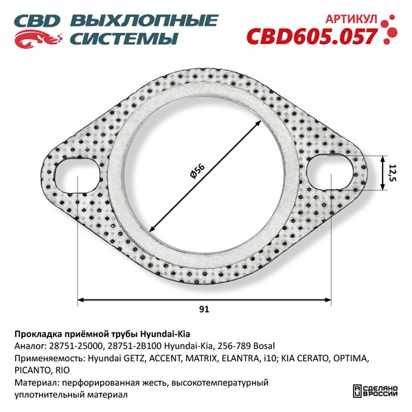 CBD605.057 CBD Прокладка HYUNDAI KIA трубы приемной глушителя CBD