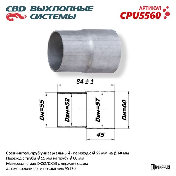 CPU5560 CBD Соединитель труб выхлопной системы (переход с d=55мм на d=60мм) CBD