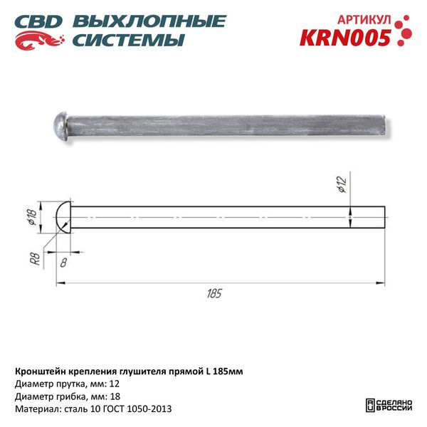 KRN005 CBD Кронштейн крепления глушителя прямой L=185 CBD