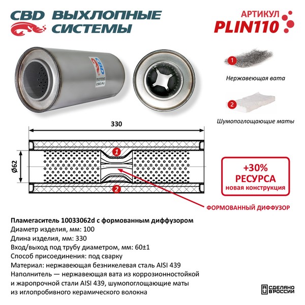 PLIN110 CBD Пламегаситель d=60мм L-330мм CBD