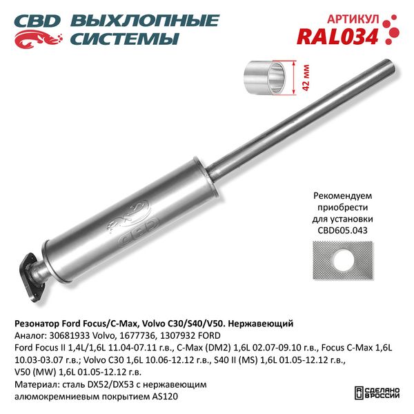 RAL034 CBD Глушитель FORD Focus (04-) средняя часть CBD