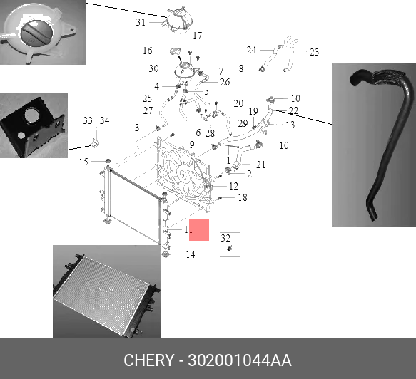302001044AA CHERY Радиатор CHERY Tiggo 8 Pro охлаждения двигателя OE