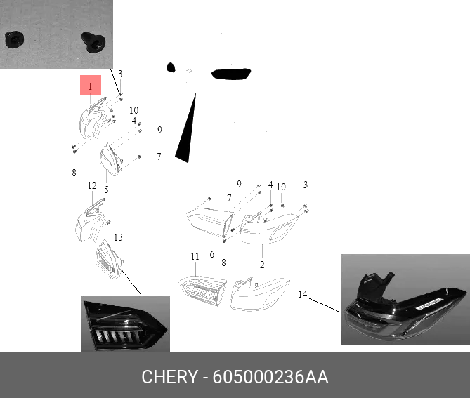 605000236AA CHERY Фонарь задний CHERY Tiggo 8 Pro (21-) левый OE