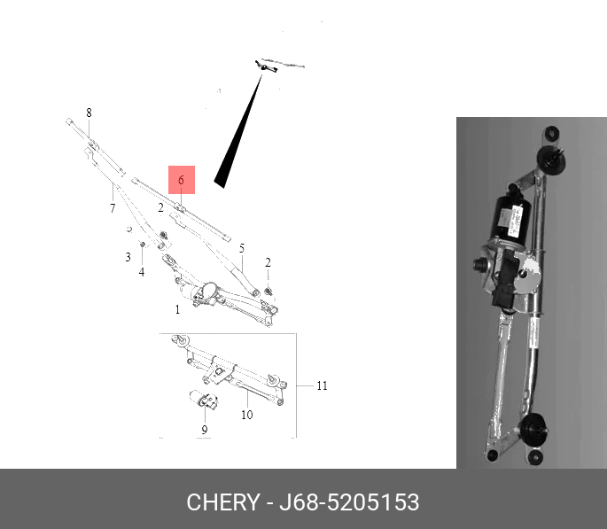 J68-5205153 CHERY ЩЁТКА СТЕКЛООЧИСТИТЕЛЯ 55 T1A/T18/T1E/T15/T19