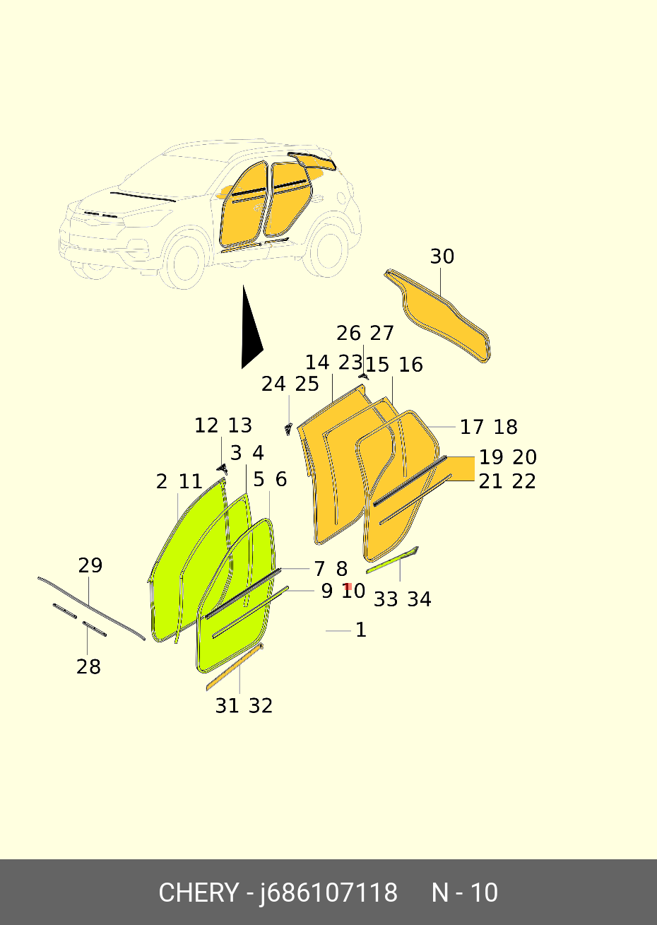 | Наименование | УПЛОТНИТЕЛЬ СТЕКЛА НАРУЖНИЙ ПЕРЕДНЕЙ ПРАВОЙ ДВЕРИ CHERY |