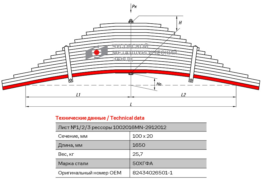 1002016MN-2912101 OMK AUTO лист коренной задн.! №1 100х20 L=1650\ MAN