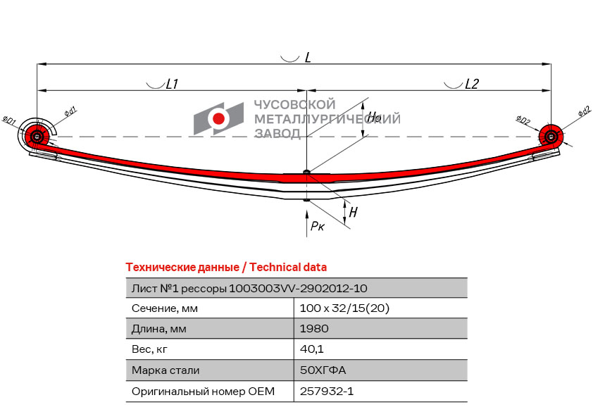 1003003VV290210110 OMK AUTO лист рессоры! передней №1 \ Volvo FM/FH Euro 6/FMX