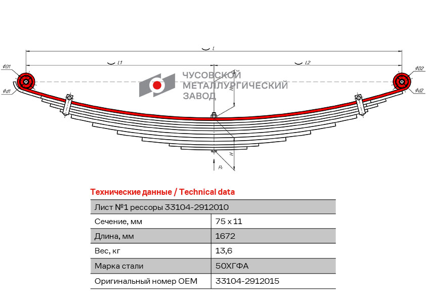 | Наименование | Лист рессоры ГАЗ-33104 Валдай задней №1 L=1672мм ЧМЗ |
