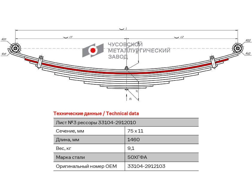 | Наименование | Лист рессоры ГАЗ-33104 Валдай задней №3 L=1460мм ЧМЗ |