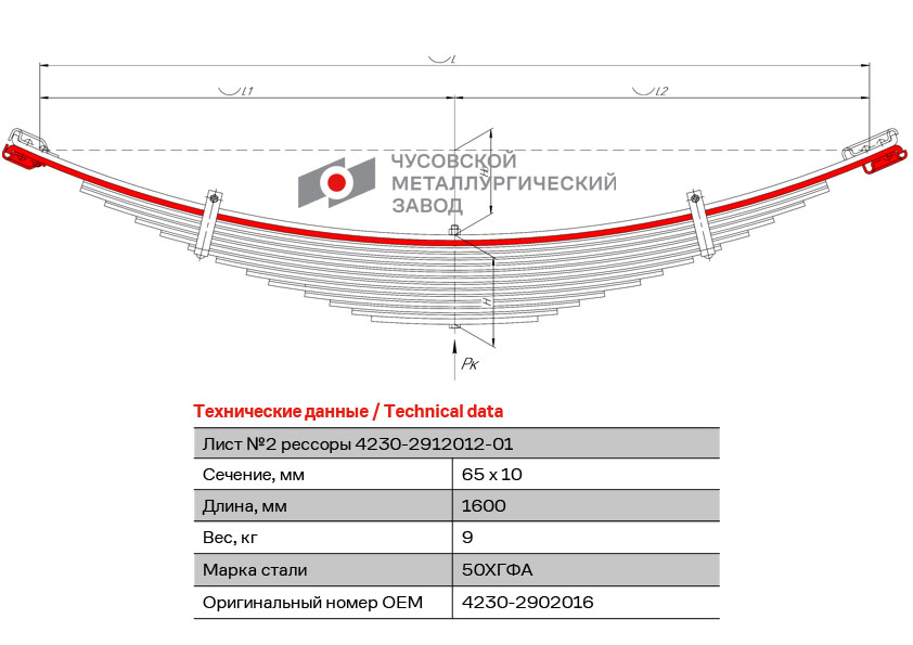 42302902016 OMK AUTO лист подкоренной перед.! №2 65х10 L=1600\ ГАЗ