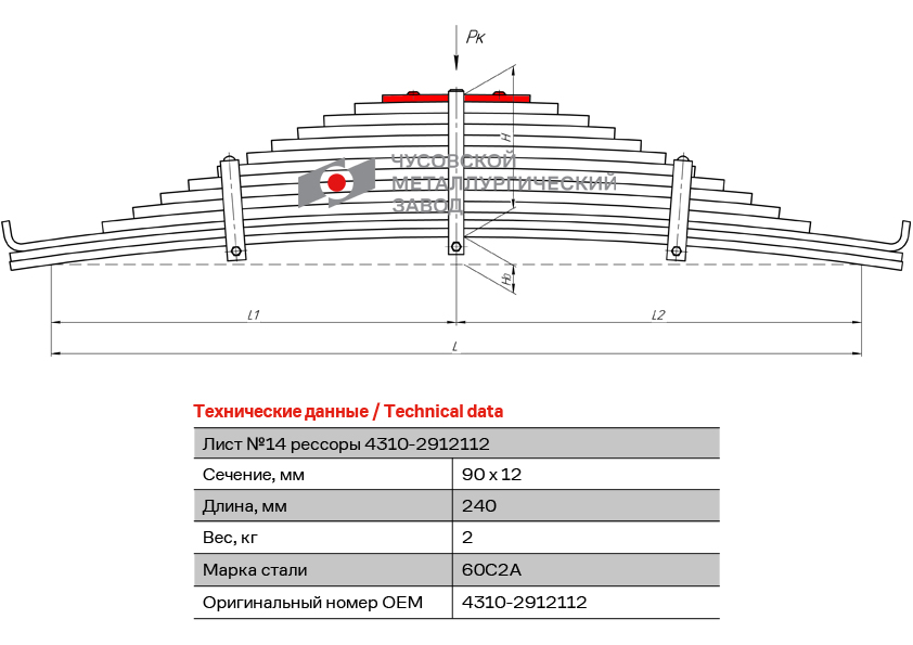 4310-2912112 OMK AUTO Лист рессоры КАМАЗ-65115,43118,53229 задней №12 L=240мм ЧМЗ