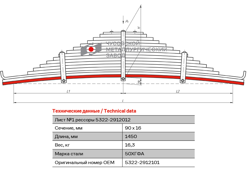 | Наименование | Лист рессоры КАМАЗ-5322,65115 задней №1,2 L=1450 мм ЧМЗ |